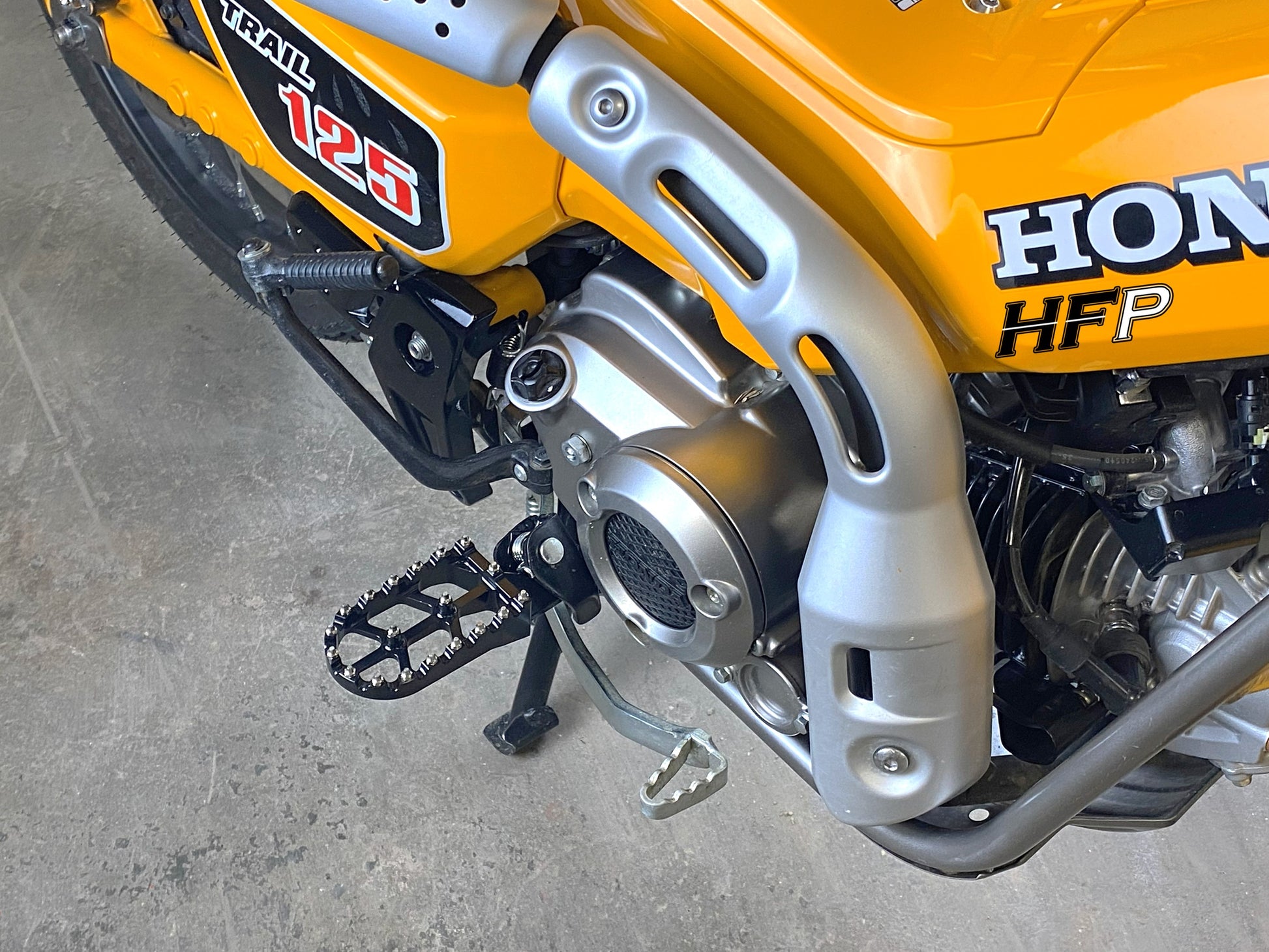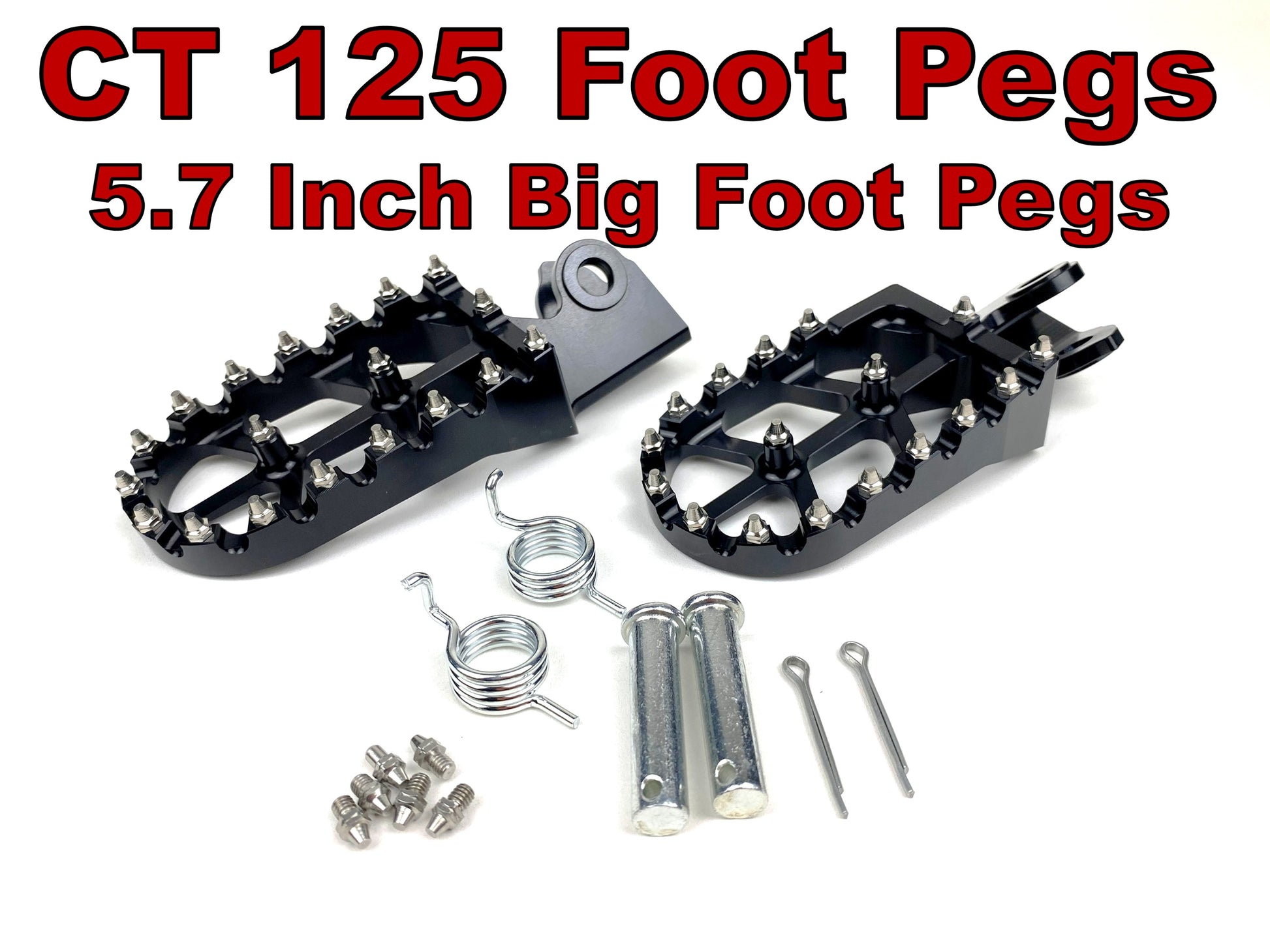 · Do you feel like your CT125 was made for a tiny person? These CT125 Big Foot Pegs make it feel like a normal sized motorcycle giving you a wider stance and more room to move your feet around.
