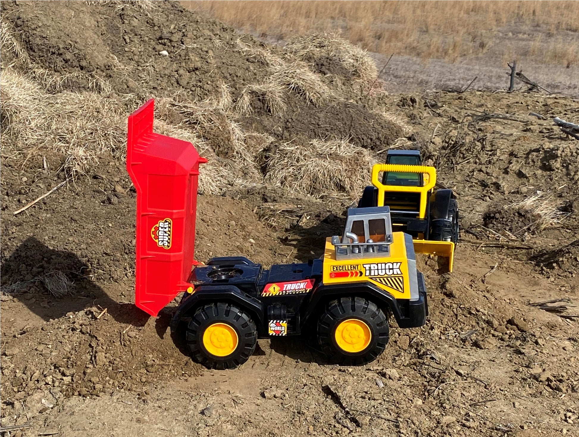 Great for stimulating kids imagination. Kid powered for hours of fun operating this dump truck toy in their own little construction site moving sand, dirt and rocks around just like the a real dump truck. Big Dump bed for larger load on the construction site. Easy to dump.
