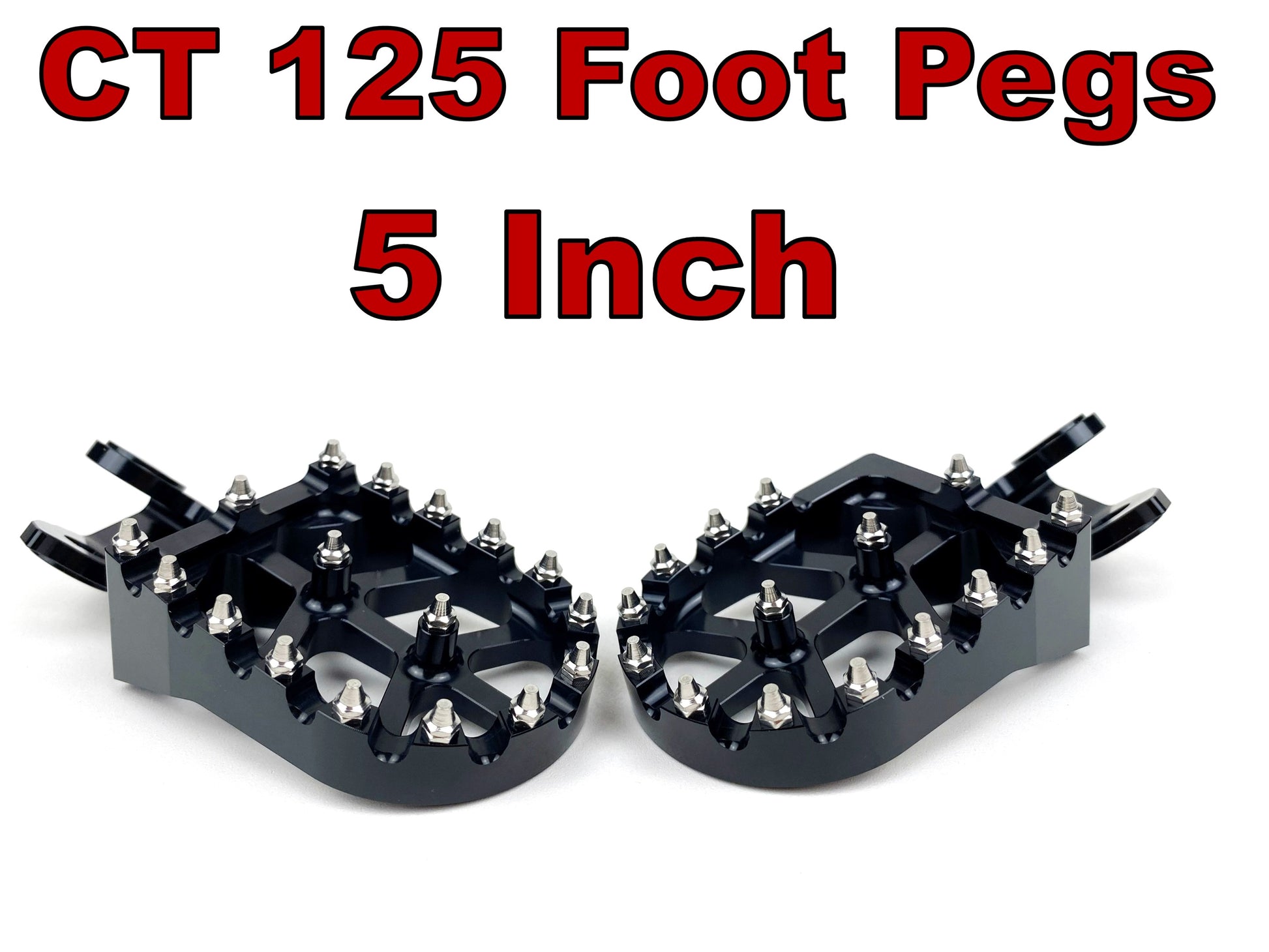 · 5 Inch foot pegs for Honda CT125 Trail and Hunter Cub. We do sell a 5.7 inch Big Foot Peg if you need a longer peg. On this page you are purchasing the 5 inch peg.