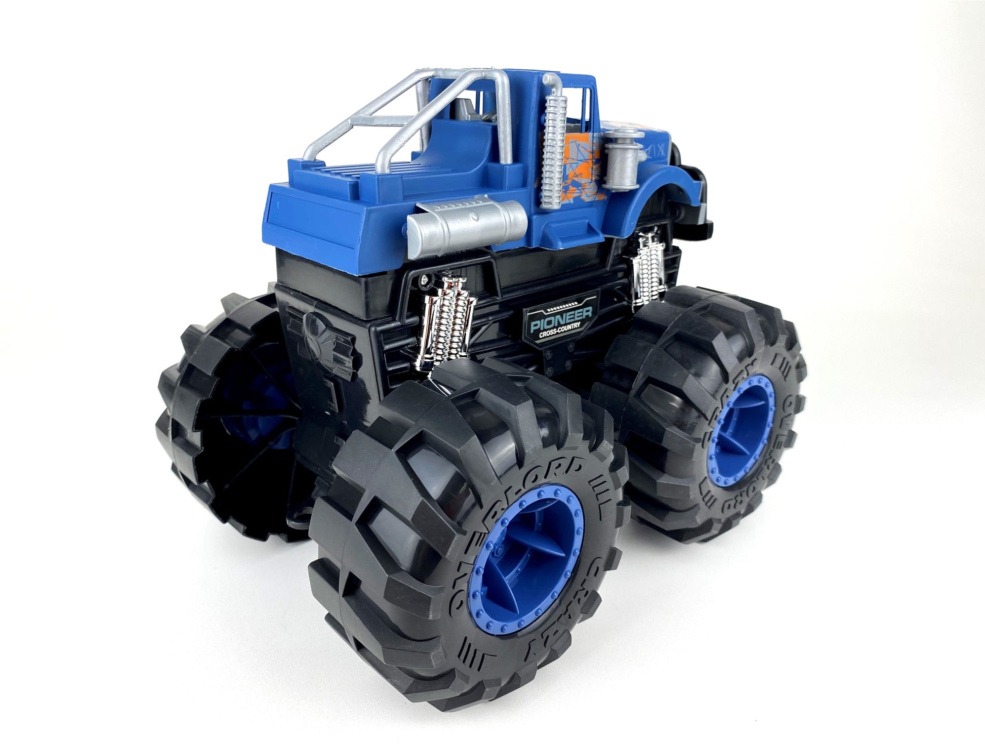 No Batteries. Non friction toy. No inertia engines. Simple kid powered design. No messing with batteries or engines that don't last. Great kid monster truck toy that will last.